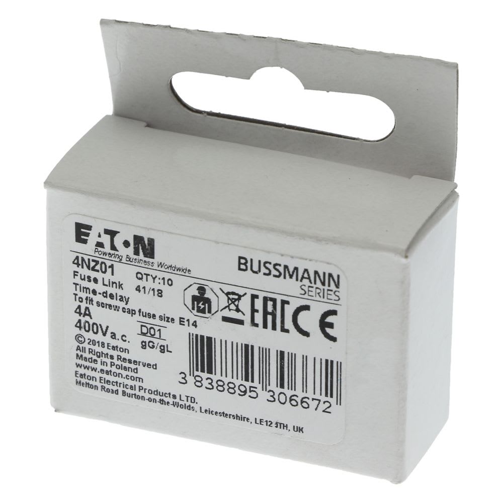 Fusibile, cartuccia fusibile, Bassa tensione, 4 A, AC 400 V, D01, gL/gG, IEC, ritardato, E14, per applicazioni domestiche e industriali generali, IEC 60269-3, VDE 0636