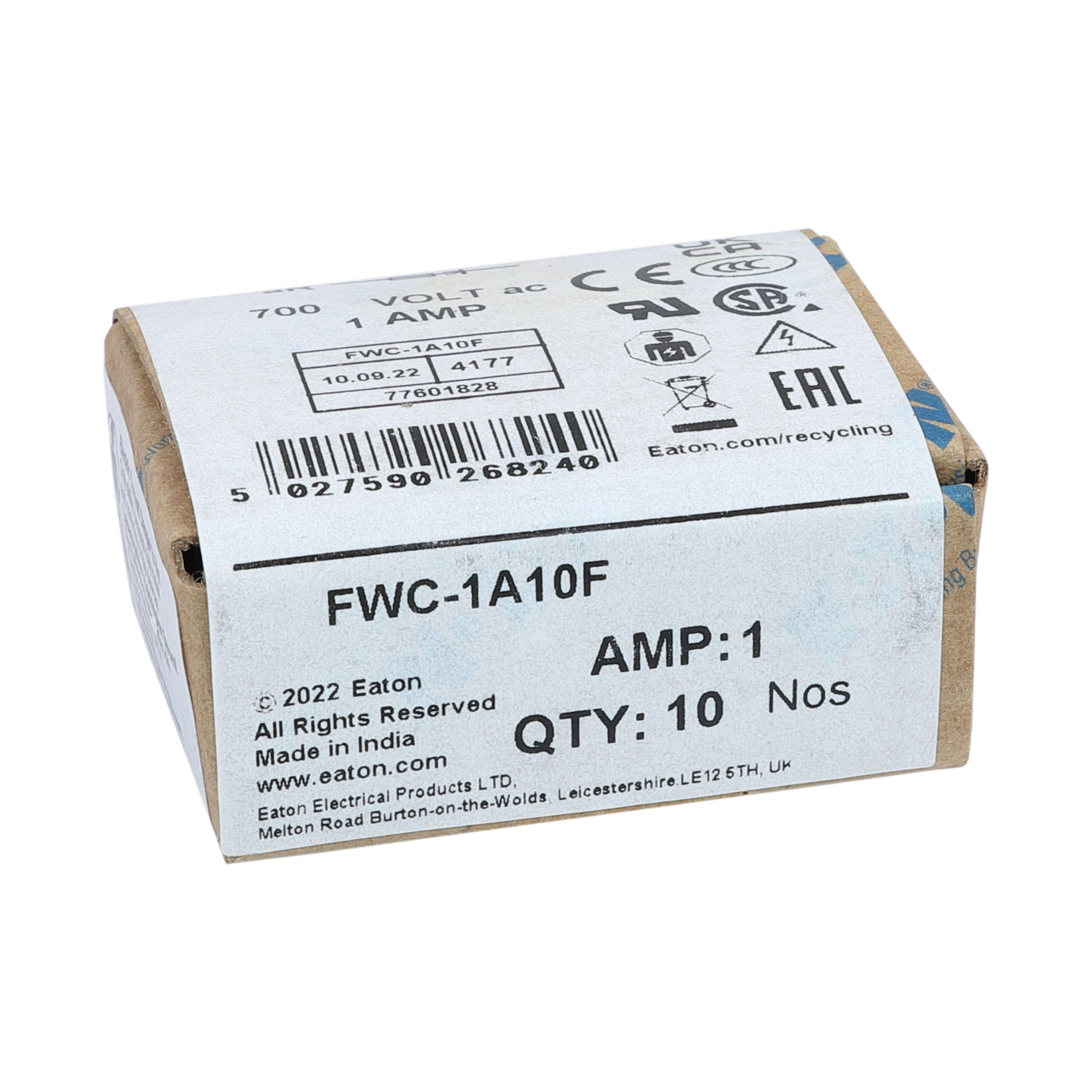 EATON - EAOFWC-1A10F FWC-1A10F 1AMP 600V AC FERRULE 10 X 38MM