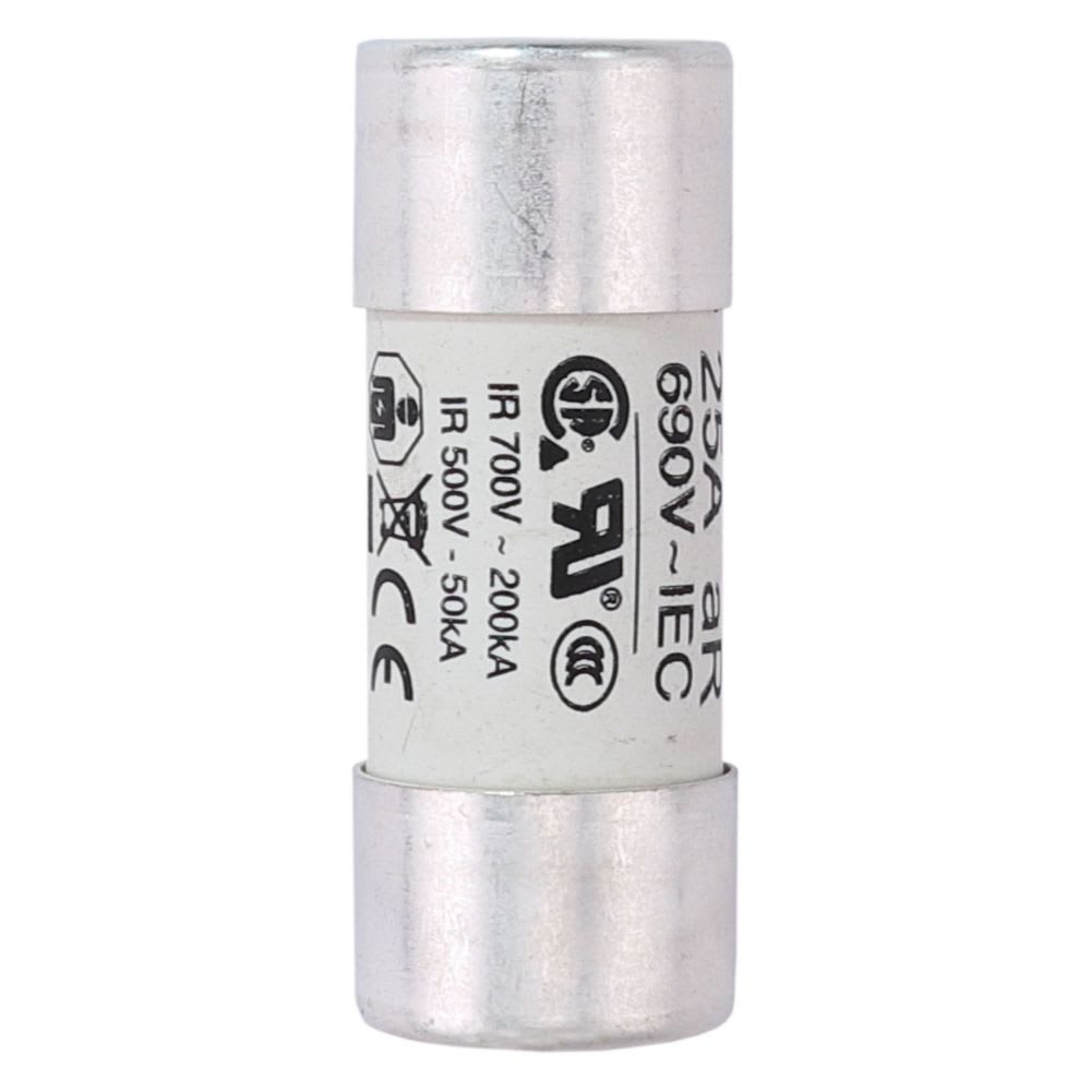 fusibile, cartuccia fusibile, corsa rapida, 25 A, AC 700 V, 22 x 58 mm, aR, UL, con percussore, cilindrico, protezione di sbarre collettrici DC, motori DC, convertitori/raddrizzatori di potenza e dispositivi di avviamento a bassa tensione, UL 248, poteredi apertura 200 kA, Accessori opzionali portafusibile CH221B