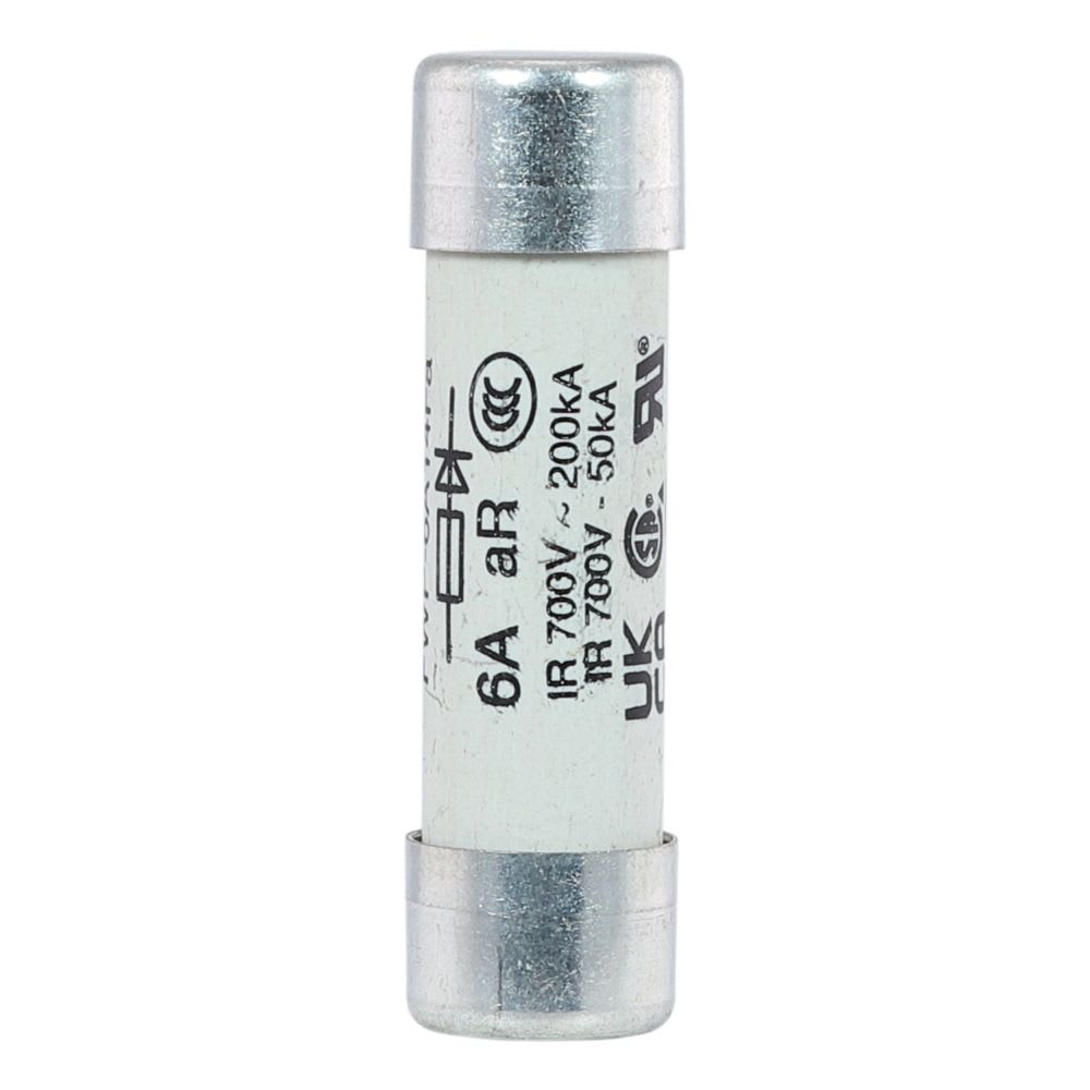 fusibile, cartuccia fusibile, corsa rapida, 6 A, AC 700 V, 14 x 51 mm, aR, UL, cilindrico, protezione di sbarre collettrici DC, motori DC, convertitori/raddrizzatori di potenza e dispositivi di avviamento a bassa tensione, UL 248, potere di apertura 200 kA, Accessori opzionali portafusibile CH141B