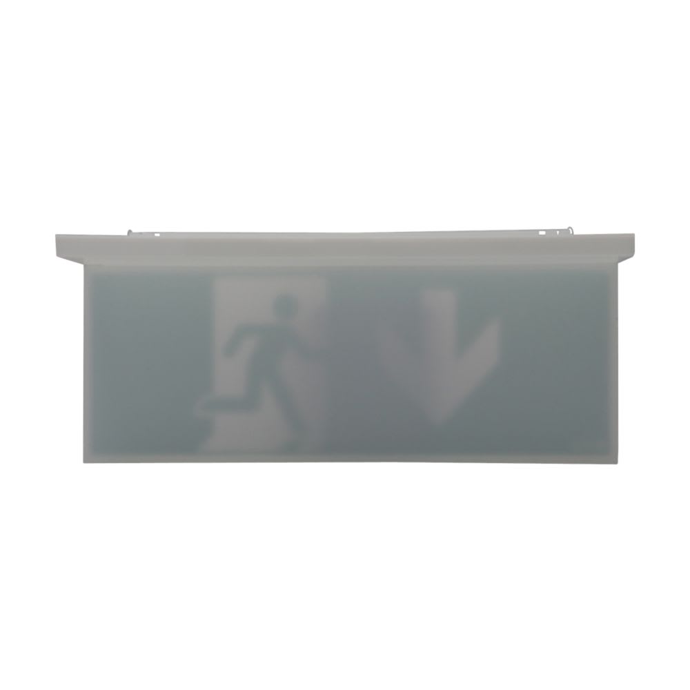Pannello di segnalazione bifacciale opale ad alta uniformità Eaton da abbinare ad apparecchi NexiTech, modello NEXI-PLEXO-20-DB, per indicazione basso-cieco, distanza di visibilità 20m, compatibile con le versioni IP40.