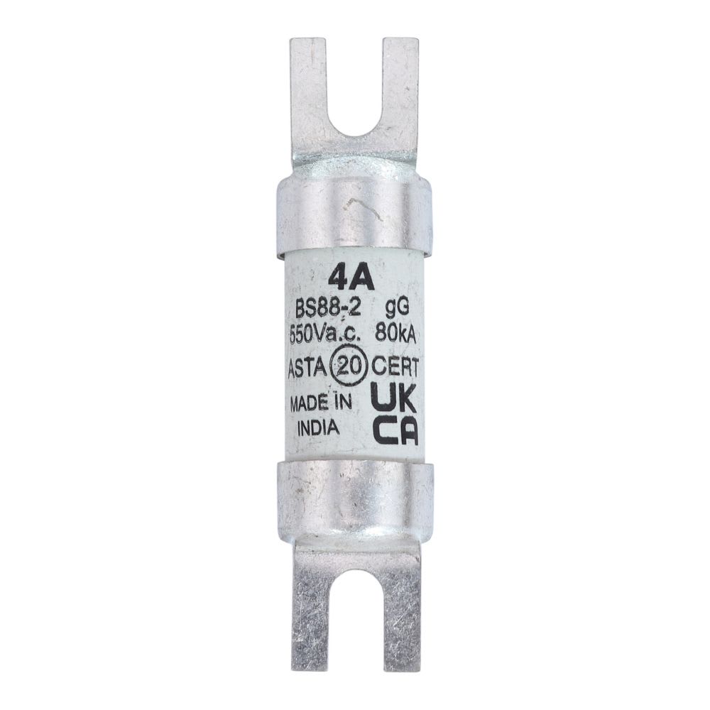 Fusibile, Valore Nominale di 4 A, Tensione Nominale AC 550 V, BS88/A1, 14 x 55 mm, gL/gG, BS, terminali di fissaggio a dado (disassati), applicazioni industriali generiche, BS88-2, IEC 60269-2, Potere di Interruzione 80 kA, Accessori opzionali portafusibili RS20 CM32FC