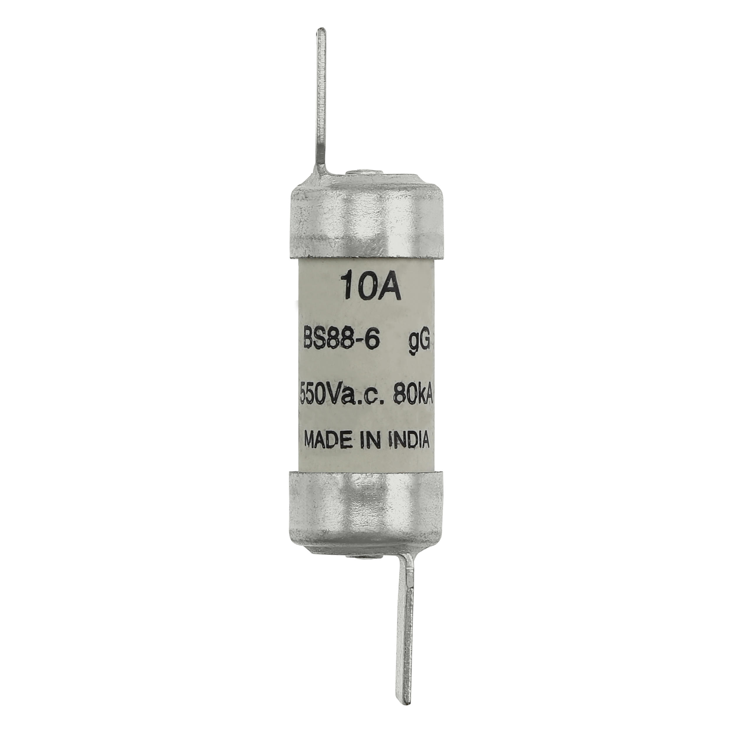 Fusibile, Valore Nominale di 10 A, Tensione Nominale AC 550 V, BS88/F1, 14 x 59 mm, gL/gG, BS, Terminali fusibili a coltello sfalsati, applicazioni industriali generiche, BS88-2, IEC 60269-2, Potere di Interruzione 80 kA, Accessori opzionali portafusibili 32NNS SC32
