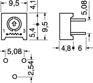 TRIMMER CERMET 1 GIRO SIGILLATO ESECUZIONE ORIZZONTALE. POTENZA:0,5 W A 85°C. TEMP. LAV.:-55°C÷+125°C.TOLLERANZA:±10%. CAC. TARATURA:7/1856. VERT.25 G. 5 KOHM.