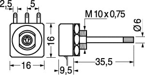 POTENZIOMETRI A STRATO DI CARBONE ACP A VARIAZIONE LINEARE. Senza interruttore. POT. MAX A 40°:0,25W. N° CICLI:>25000. TENS. LIMITE:250V. TEMP. LAVORO:-25°c+70°c. TOLLER.:100-1Mr±20%. >1Mr ±30%. CURVA:lineare. RES. DI CONT.:>=5%Rn. ANG. GIRO MECC.:265°±5°. ANG. GIRO ELETT.:245°±20°. RES. ALLA TORS.:10Ncm. RES. SPINTA/TRAZ.:>100Ncm. MANOP.:15/1000 -15/7000. TERMINALI A SALDARE MCA 14 HOCC-10KA2020-WT14073-NE-RM.