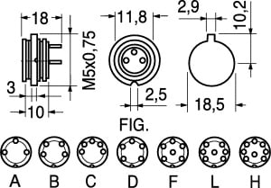 PRESE SCHERMATE A NORME DIN DA PANNELLO. N.Poli: 4. CORPO:ottone. ISOLAM.:resina fenolica. TERMINALI:a vite.