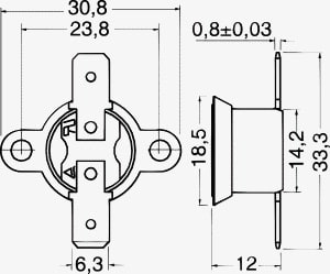 INTERRUTTORI TERMICI NORMALMENTE APERTI. Al raggiungimento della temperatura di intervento si chiude il circuito automati-camente, ripristinandosi nella successiva applicazione. CONTATTO:normalmente aperto. TENSIONE:250 V. PORTATA MAX:10 A. TEMP.NOM.:50°C÷185°C. CORPO:termoplastico. TOLLERANZA:± 3%. CON FASTON MASCHIO:6,35 mm. PER FASTON:4/11520. COPRI FASTON:4/1153. Temperatura Intervento: 50 °C.