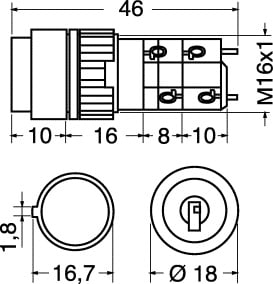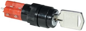 INTERRUTTORE A CHIAVE BIPOLARE 2 POSIZIONI. Fornito con 2 chiavi estraibili sia in chiusura che in apertura del contatto, unica combinazione. CORPO:term. res. alte temp. CONTATTI:argento. TERMINALI:a saldare. RESIST.ISOL.:>100 MOHM. RES. CONT.:< 50 mOHM. GRADO DI PROTEZ.:IP 40. TEMP.LAV.:-25°C ÷ +55°C. FORAT.PANN.:Ø 16 mm. SPESS.MAX PANN.:8 mm. PORTATA MAX.:5 A-250 VCA. ANGOLO ROTAZ.:90°.