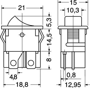 INTERRUTTORI UNIPOLARI MINIATURA. PORTATA:6 A - 250 VCA. CORPO:nylon rinf. vetro. CONTAT.:ottone nichelato. TERMIN.:faston passo 4,80. FISSAGGIO:autobloccante. PER FASTON:4/11525. COPRIFASTON:4/11560. Col.Tasto: Nero.