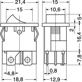 INTERRUTTORI BIPOLARI LUMINOSI. PORTATA:6 A - 250 VCA. CORPO:nylon rinf. vetro. CONTAT.:ottone nichelato. TERMIN.:faston passo 4,80. FISSAGGIO:autobloccante. PER FASTON:4/11525. COPRIFASTON:4/11560.