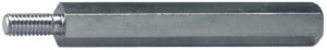 DISTANZIATORI ESAGONALI CON VITE. MATERIALE:ottone nichelato. CHIAVE:6 mm. FORO:4MA.