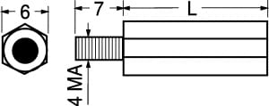DISTANZIATORI ESAGONALI CON VITE •MATER.: ottone nichelato •CHIAVE: 6 mm
