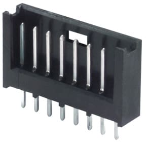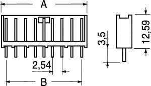 CONNETTORI MASCHIO SU FILA SINGOLA DIRITTI AMP SERIE MODU II CONTATTI STAGNATI. Con pareti di polarizzazione e ritegno meccanico del connettore femmina per una migliore connessione. MONTAGGIO:c.s. PASSO:2,54 mm. CORR. NOM. X CONT.:3 A. TENS. PROVA:750 V.TEMP. LAV.:-65°÷+105°C. CORPO:poliest. caric. vetro grado di autoest. 94 VO. CONTATTI:stagnati su bronzo 2 µm min. PER CONNETTORI:5/5700. Impiegati su kit e montaggi elettronici in genere. Dim. A: 7,36mm. Dim. B: 2,54mm.