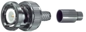 Spina BNC a crimpare • Tensione lavoro: 500V • Corpo in ottone nichelato • Temperatura lavoro: -65°C +125°C • Impedenza: 50 Ohm • Isolamento: delrin • Per cavo: RG 174 • Norme MIL: UG88/174