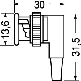SPINA BNC AD ANGOLO. CORPO:ottone nichelato. TERMINALE:a vite. PER PRESE:5/22000. CAVO:6/2510.