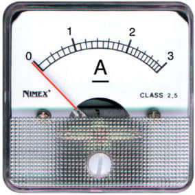 AMPEROMETRO A BOBINA MOBILE MISURE IN CC. Con dispositivo d'azzeramento. MATER.: resina trasp.antiurto. CLASSE:2,5. Portata: 0 A ÷1 0 A.
