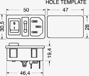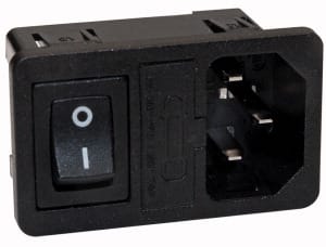 SPINA TRIPOLARE C14 CON PORTAFUSIBILE ED INTERRUTTORE A BILANCERE. FISSAGGIO:autobloccante. PORTATA:10 A - 250 V. CORPO:bachelite. CONTATTI:ottone nichelato. FISSAGGIO CAVO:faston 4.8. PER PRESE:13/845. CAVI:6/300.