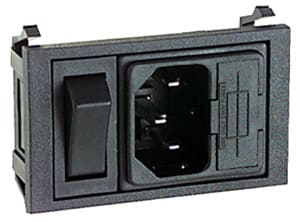 SPINA TRIPOLARE C14 CON PORTAFUSIBILE ED INTERRUTTORE A BILANCIERE. FISSAGGIO:autobloccante. PORTATA:10 A - 250 V. CORPO:bachelite. CONTATTI:ottone nichelato. FISSAGGIO CAVO:faston 6,35. PER PRESE:13/845. CAVI:6/300.