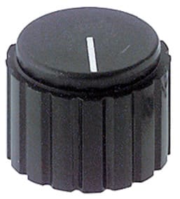 MANOPOLE CON INDICE. Innesto per perni Ø 6 mm bloccaggio mediante viti laterali. MATERIALE:pvc. CAPPUCCIO:alluminio nero opaco. Dim. D: 20mm.
