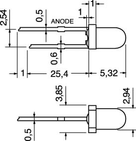 LED CILINDRICI A FASCIO DIFFUSO Ø 3 mm. MAX POTENZA:100 mW. TEMP. LAV.:-40°C ÷ +80°C. PER PORTALED: 4/8142- 4/8168. Intens.Lum.: 30 MCD. Colore: Verde.