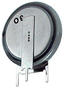 PILE AL LITIO. TERMINALI:a c.s. TENSIONE:3 V. Applicate sulle memorie dei calcolatori e numerosi altri utilizzi nel campo dell'elettronica.