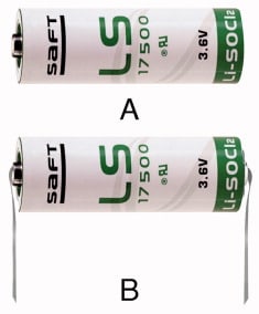 PILA AL LITIO SAFT TIPO A DA 3,6V LS 17500. CORRENTE DI SCARICA:100 mA. TEMPERATURA DI LAVORO:-60°C÷85°C. ANODO:litio, CATODO:cloruro di tionile. Per alimentazione memorie, ram e CMOS, PLC, a norme "MIL". CERTIFICAZIONI:RAQ 1 QA Sistem Certification, AQAP-1 NATO, MIL-Q-9558A, BS 5750 UK, AQF-2.