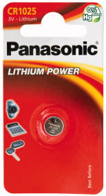 PILE AL LITIO 3V PANASONIC. TENSIONE:3 V. Per alimentazione di orologi, calcolatrici, databank, radiocomandi ecc. Mod.: CR1025.