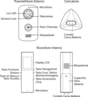 VIDEOCITOFONO WIRELESS. Videocitofono wireless digitale, sistema innovativo per la tua casa, molto pratico e facile da installare. Composto da due moduli: Videocitofono e ricevitore intrerno. Trasmissione video a colori grazie ad un videocitofono a due vie. Immagine ad alta definizione: il sistema utilizza le tecnologie più avanzate per dare un'immagine di ottima qualità. Regolazione automatica dell'esposizione: la videocamera si adatta automaticamente alle condizioni d'illuminazione. Il sistema di illuminazioneintegrato nella videocamera esterna,permette di identificare i visitatori senza un'illuminazione supplementare. Display LCD TFT. Risoluzione Video: 320x240, 15 fotogrammi al secondo. Obiettivo grandangolare e LED illuminazione per visione notturna. Videocitofono a doppia alimentazione (batteria o corrente 12Vcc). Grado di protezione: IP55. Microfono e vivavoce. Funzioni: Monitoraggio, sblocco porta da remoto e allarme anti-manomissione. Luminosità e volume vivavoce regolabili. Supporta fino a 2 videocitofoni e 2 ricevitori interni. Distanza di trasmissione: fino a 260m dall'esterno. Velocità di trasmissione: 2.0Mbps. Frequenza: 2.4GHz. Compressione Video: H.264. Sensore Immagine: Color CMOS. Angolo di Visualizzazione: 120°. Base aggiuntiva: 37/4525. Videocitofono aggiuntivo: 37/4526.