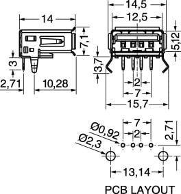 PRESA USB 3.0 TIPO “A” 90°. Completamente schermata. MONTAGGIO:c.s. PER SPINA:40/64710.
