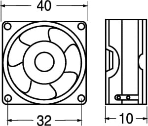 VENTILATORE ASSIALE SUPPORTO CUSCINETTI 40x40x10 mm. ELICA:poliestere termopl. TEMP. LAV.:-20°C÷+80°C. FATT. RUMORE:28 dB. GIRI MIN./RPM:6500. CFM:7,7. GRIGLIA:45/9646. Per computer, strumenti, ali-mentatori, amplificatori, tele-visori, videogiochi, videoregi-stratori.