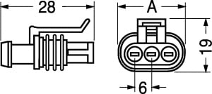 CONNETTORI PORTAFEMMINE AMP SERIE SUPER SEAL 1.5. Intercambiabili e interconnettibili con gli attuali componenti e con gli apparecchi già in uso nel settore automobilistico (sensori, controllo temperatura acqua, ecc.). Resistenti all'immersione statica edinamica in accordo alla norme IEC 529 e DIN 40050 I.P. 6.7. Resistenti a ozono,idrocarburi aromatici, sali, liquido freni, liquido anticongelante ecc. BLOCCH.:poliammide 6,6. caricato vetro approvato UL. AGGANCIO SECONDARIO:poliammide 6,6 caricato vetro approvato UL. GUARN.:gomma siliconica. TEMP.:-40°C÷+125°C. RESIST. ISOL.:200 MOHM. CONTATTI:serie 98/16308. CONNETTORI:98/15995. ESTRATTORE:98/46408. TAPPO CAVITA’:98/16341. CAPPUCCI:serie 98/16245. N.Poli: 4.