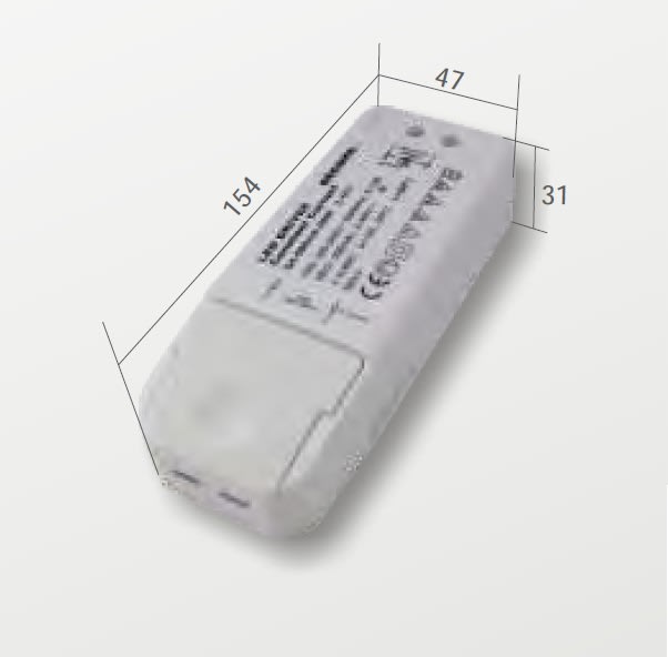 Alimentatori 5W 350mA. Alimentatore a corrente costante, mantiene costante la corrente d’uscita indipendentemente dal numero di LED collegati. Tensione d’uscita 2-14VDC. Classe di isolamento II. Protezione termica. Protezione cortocircuito. Protezione autoripristinante contro le sovratemperature. Grado di Protezione IP65. Identificazione della polarità. Alimentatore da incorporare.