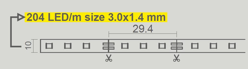 KIT STRIP 204LED/m 17.5W/m bianco freddo 24Vdc. Da installare su profili dissipanti adeguati alla potenza espressa, che garantiscano il corretto grado di protezione IP. L’elevato numero di led permette una ottima uniformità luminosa, attraverso l’utilizzo di coperture satinate. Dimmerabili attraverso la serie di controlli ed alimentatori offerti nei capitoli dedicati. Il materiale costruito è completa di biadesivo 3M. Grado di protezione: IP20. Angolo: 120°. Tipo LED: Liteon Chip. Ra: 85. Corpo: (Rame/Kapton) doppio strato. Colore: Solder Bianco. GARANZIA PLS 2 ANNI.