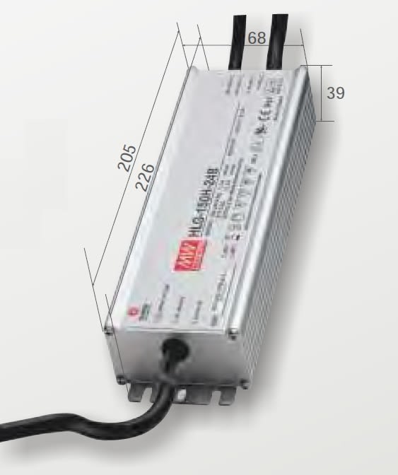 Alimentatore 150W 12Vdc IP67 DIMMERABILE. Caratteristiche: Alimentatore indipendente IP67 per uso esterno. Cavi di entrata e uscita contrapposti. Fissaggio dell’alimentatore tramite asole per viti. Protezioni: termica e da cortocircuito. contro le extra-tensioni di rete. contro i sovraccarichi. Adatto all’alimentazione di moduli LED. Disponibile versione dimmerabile 1-10VDC, potenziometro 100kohm o PWM.