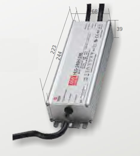 Alimentatore 240W 24Vdc IP67 DIMMERABILE. Caratteristiche: Alimentatore indipendente IP67 per uso esterno. Cavi di entrata e uscita contrapposti. Fissaggio dell’alimentatore tramite asole per viti. Protezioni: termica e da cortocircuito. contro le extra-tensioni di rete. contro i sovraccarichi. Adatto all’alimentazione di moduli LED. Disponibile versione dimmerabile 1-10VDC, potenziometro 100kohm o PWM.