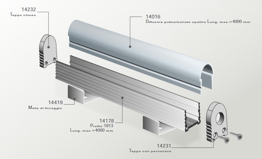 COMPONENTI PROLINE 1813. Profilo in alluminio anodizzato. Lunghezza barre fino 2m. Colore: bianco.
