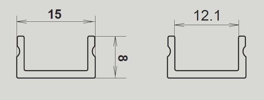 PROLINE 1508. Micro profilo in alluminio anodizzato. Lunghezza barre fino 3m. Colore: bianco.