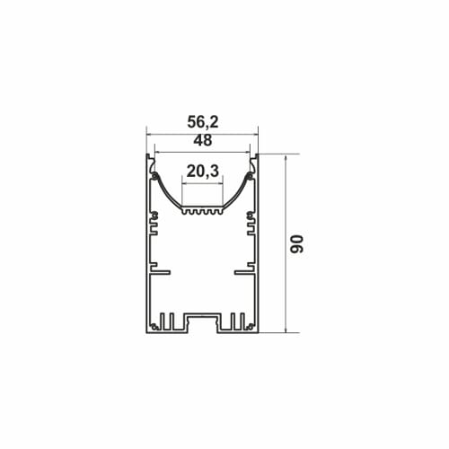 Profilo in alluminio anodizzato per Proline 5690. IP44. Classe III. Dimensione: 2000x56x90mm.