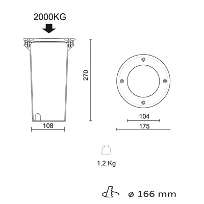 Diametro di incasso - 166 mm