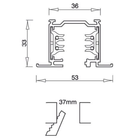 Tipologia di prodotto : Binari. Tipologie di montaggio : Incasso da soffitto. Descrizione : Binario trifase. Luci per interni/esterni : Interni. Capacità di carico (Kg) : I binari trifase LKM possonosopportare un carico di 2Kg. ogni 200 mm. con unadistanza massima fra i punti di fissaggio di 1000 mm.Nel caso di carico di 5 Kg. ogni200 mm., la distanza di fissaggio deve essere di 500 mm. Corrente (A) : 16. Resistenza al filo incandescente (°C) : 850. Tensione (V) : 230/440. Dimensioni E Peso. Lunghezza (mm) : 4000. Larghezza (mm) : 53. Profondità incasso (mm) : 37. Colore: Bianco.