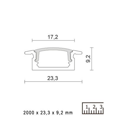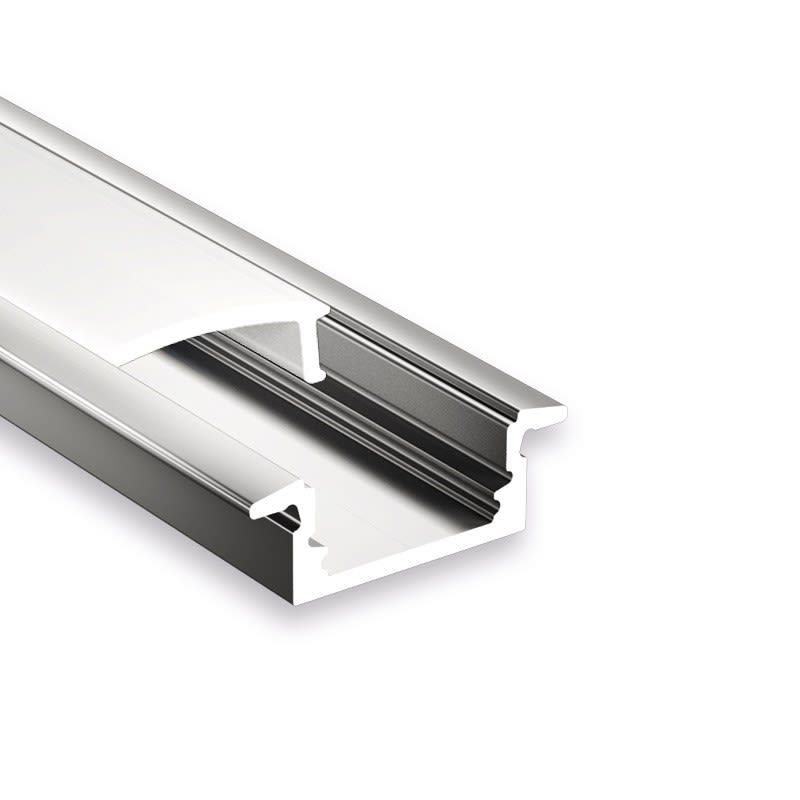Profili da incassi in lega di alluminio estruso anodizzato, opale, cover semi-trasparente, ideali per l'installazione di strip led. 4 ganci di fissaggio e 4 tappi di chiusura (2 + 2), sono forniti con il profilo.