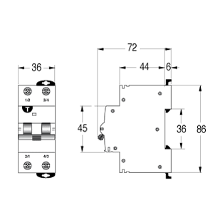 INTERRUTTORE MAGNETOTERMICO DIFFERENZIALE COMPATTO 2 POLI IN 2 MODULI CORRENTE NOMINALE DA 6A A 40A TENSIONE NOMINALE 230VAC TENSIONE DI IMPIEGO MIN-MAX 155-265V CON POTERE DI INTERRUZIONE 4,5KA 6KA E 10KA SECONDO EN61009-1 E 6KA 10KA E 15KA SECONDO EN60947-2 CLASSE AC A E AI AINTERPURBAZIONE SOGLIE DIFFERENZIALI DI 10mA 30mA e 300mA