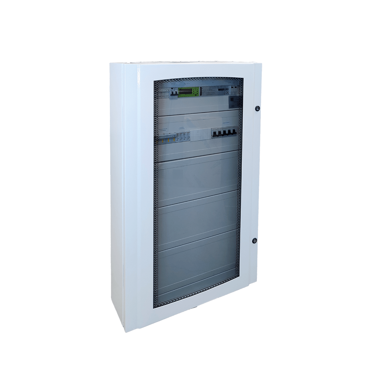 I quadri di interfaccia OPEN rappresentano una soluzione per la connessione di impianti fotovoltaici CEI 0-21. I quadri OPEN nascono con lo spazio di cablaggio per gli interruttori di protezione inverter che saranno installabili successivamente tramite icollegamenti già forniti- Interruttore Generale 4x125A 50kA (EN60947-2) con bobina di sgancio per funzione di rincalzo-Relè di interfaccia NA003 con Ups di emergenza (CEI 0-21)-Contattore DDI 4 poli 140A AC-3. Spazio per cablaggio Interruttori protezioneinverter 3F+N: 2x33kW (oppure 40kW+20kW o 50kW+10kW), 3x20kW, 4x15kW, 5x12,5kW-Kit di cablaggio incluso (6x35mm2 nero+2x35mm2 blu; 9x16mm2 nero+3x16mm2 blu)-Interruttori previsti 3F+N (da ordinare a parte):10kW DMA63NPC20/300;12,5kW DMA63NPC25/300;15kW DMA63NPC32/300;20kW E94SC40+HD9532/300; 25kW E94SC50+HD9463/300;33kW E94SC63+HD9463/300;40kW E880504C80+HD94100/300;50kW E880504C100+HD94100/300. I componenti sono racchiusi in un contenitore a parete in metallo IP65 LxHxP 670x110x212mm.