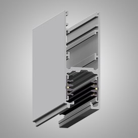 EUROSTANDARD PLUS TRACK DALI H. Nel binario sono alloggiati i conduttori, racchiusi in profili estrusi rigidi di materiale isolante ad alta rigidità elettrica. I 3 conduttori di fase con il neutro comune formano 3 circuiti distinti permettendo 3 accensioni separate. Alimentando il binario alla rete monofase il carico massimo applicabile è di 16A (3500 VA) suddivisibile nei 3 circuiti. L’allaccio alla rete elettrica trifase permette un carico complessivo di 16A (10500 VA) suddivisibile nei 3 circuiti (3x3500 VA). La posizione laterale del contatto di terra rende la struttura del binario asimmetrica e pertanto i giunti di collegamento dovranno essere scelti di conseguenza. Realizzato in alluminio. Colore: Bianco RAL 9003. RDD: Il cablaggio di serie è 230-240V/50-60Hz, elettronico dimmerabile predisposto per la regolazione con segnale DALI. Dimensone: 1mt.