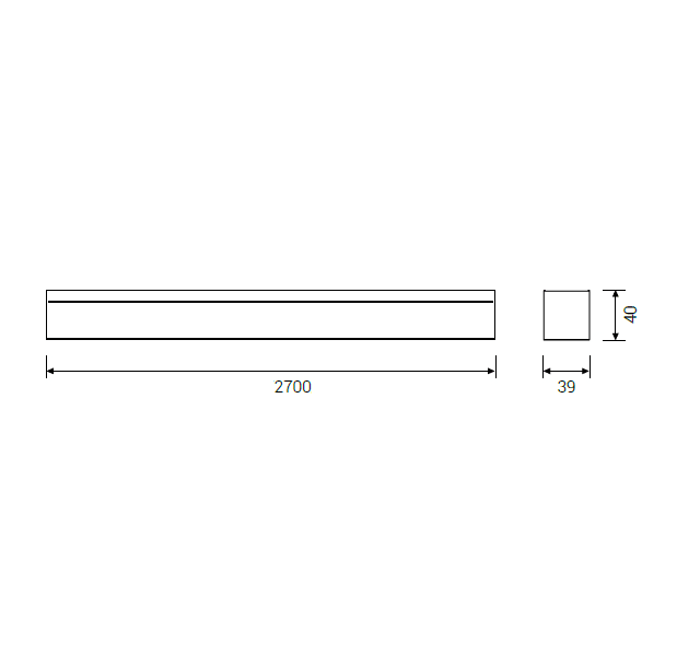 Profilo in alluminio per applicazioni a plafone, sospensione ed incasso. Dimensioni: 2700x39x40mm. Bianco RAL 9003.