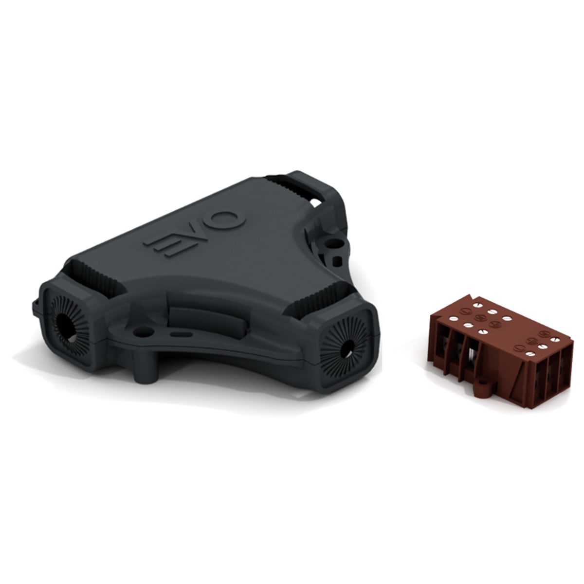 EVO ? la nuova gamma di giunti ad isolamento in gel che consente di realizzare giunzioni in linea e in derivazione con grado di protezione IP68 su un'ampia tipologia di cavi di energia impiegati nelle installazioni e nei cablaggi elettrici. Le inedite e brevettate sedi flessibili di alloggiamento dei cavi si adattano ai diversi diametri di cavo per i quali ciascun giunto ? progettato e, in combinazione alle caratteristiche isolanti del gel, consentono di ottenere il grado di protezione IP68 (in accordo alla Norma CEI EN 60529), ovvero la protezione contro l'ingresso di acqua e polvere senza l'utilizzo di pressacavi o di altri componenti aggiuntivi da preinfilare sui cavi. Alle tradizionali e collaudate morsettiere di tipo a vite si affiancano, nei modelli di maggiore utilizzo, le nuove morsettiere a molla, a due, tre e cinque poli.