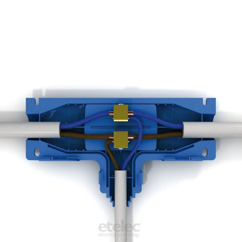 Giunto in derivazione a 90° per cavi multipolari 0,6/1 kV fino a quattro conduttori e sezione massima del cavo passante fino a 25 mm2. Il separatore verticale stampato con il guscio ed il separatore orizzontale fornito sciolto nel kit assicurano il blocco del cavo nel giunto e consentono il montaggio di quattro connettori non isolati evitando il loro montaggio sfalsato.