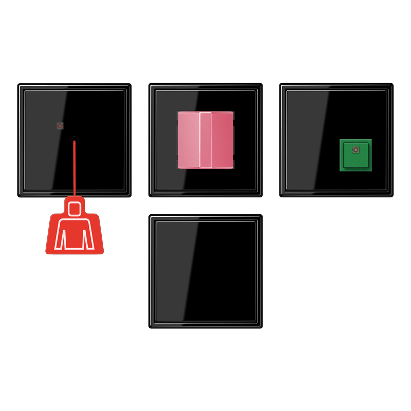 composta da: pulsante a tirante, modulo di segnalazione, pulsante di reset allarme e alimentatore (fissaggio a vite, senza griffe di fissaggio) completo con placche da 1 modulo Il sistema di chiamata d’emergenza JUNG viene utilizzato per chiedere aiuto nei servizi igienici per disabili. Soddisfa i requisiti di sicurezza secondo la norma DIN VDE 0834. Il sistema di chiamata d’emergenza ha un design modulare. I seguenti quattro componenti sono disponibili insieme come unità di chiamata d’emergenza completa: Pulsante a tiranteUna chiamata di emergenza può essere attivata nel bagno/toilette utilizzando un cordino facilmente accessibile. Il pulsante a tirante può anche essere installato sul soffitto al centro della stanza, in modo da essere facilmente raggiungibile dalle persone che hanno bisogno di aiuto. L’attivazione della chiamata è segnalata da una luce rossa di rassicurazione sul pulsante. Modulo di segnalazioneIl modulo di segnalazione può essere installato all’esterno, ad esempio accanto alla porta del WC o del corridoio. Una chiamata di emergenza attivata è segnalata visivamente da un LED rosso e acusticamente da un cicalino. Entrambi i segnali possono essere commutati da luce continua/tono continuo a luce lampeggiante/tono pulsante, a seconda delle necessità. Pulsante di reset allarmeIl pulsante di reset è installato accanto alla porta, nella stessa stanza del pulsante a tirante. Il personale di assistenza può annullare la chiamata di emergenza in questo punto. Alimentatore per il sistema di chiamata di emergenza con 24 V DC L’unità di servizio completa, il terminale di servizio e il pulsante di chiamata sono disponibili separatamente. L’unità di servizio completa può essere installata, ad esempio, nella sala del personale o della reception. Un tasto verde segnala la presenza, un tasto giallo sopprime il segnale acustico di emergenza del modulo di segnalazione per 20 secondi. I componenti del sistema di chiamata d’emergenza JUNG sono completati da placche della serie AS / A, CD o LS, in modo che sia possibile un design uniforme in tutto l’edificio. Le placche sono già incluse nell’unità di chiamata d’emergenza completa. I componenti sono disponibili anche singolarmente per ampliare un sistema.