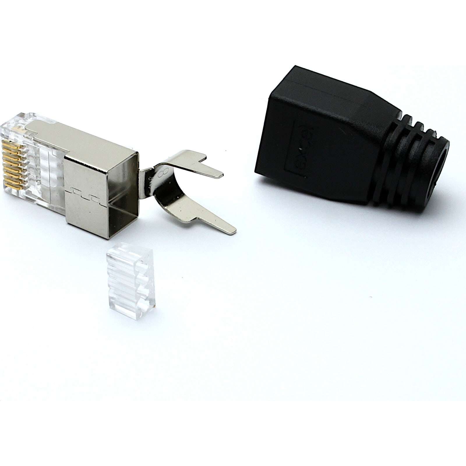 Connettore RJ45 Schermato Cat6A STP Excel con Terminali e Guaina, Colore Nero (Confezione da 100)