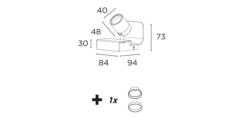 Apparecchio a parete o sotto con sorgente luminosa a LED chip on board (COB) alimentata a corrente costante tramite alimentatori elettronici incorporati nell?apparecchio. La sorgente e installata su un gruppo ottico orientabile indipendente, grazie ad uno snodo proprietario. Le regolazioni sul piano orizzontale sono gestibili nei 350?, mentre sul piano verticale sono limitate a 90?. Corpo ottico in alluminio pressofuso con funzione dissipante lega 6060. Supporto in metallo verniciato a liquido. Ottiche di riflessione in policarbonato verniciato finitura speculare atta a direzionare il flusso luminoso; Fasci disponibili: Medium, Large e Wide. Ottica ed anello decorativo da ordinarsi separatamente.